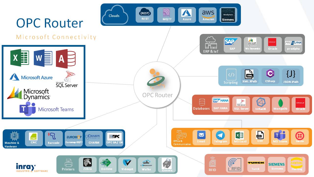 OPC路由器支持与MicroSoft的连接。 |